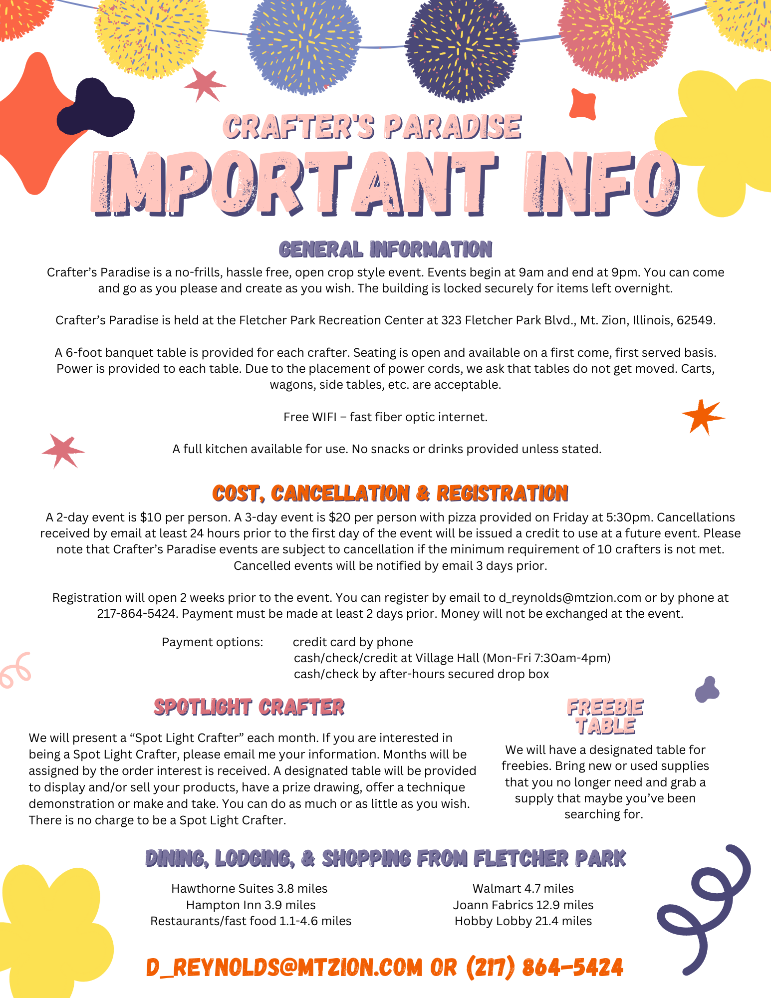 Whether it is a local festival for all ages, an athletic camp for school age children or volunteer opportunities for our local seniors, there is something for everyone. If you have questions, please contact Tiffany Wilson at t_wilson@mtzion.com or 217/864-5424.